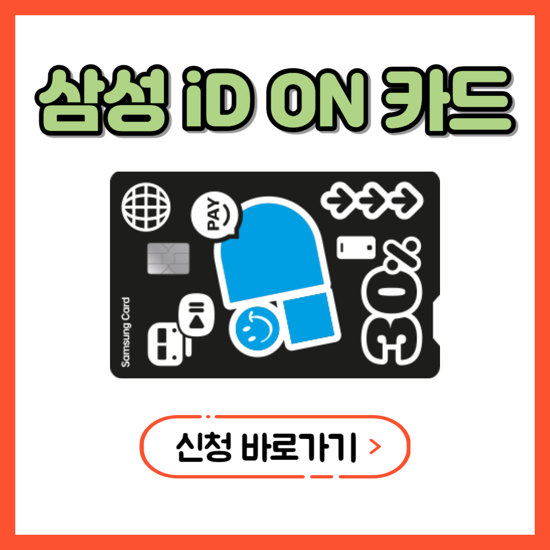 삼성 iD ON 카드는 삼성카드에서 발급하는 카드로, 선택한 디자인으로 다양한 스타일의 새롭게 출시된 카드입니다. 뉴 블루(New Blue), 모던(Modern), 펑키(Funky) 중 원하는 디자인을 골라서 맞춤형 제작이 가능합니다. 삼성 iD ON 카드는 많이 쓰는 영역(커피전문점/배달앱/델리 영역)에서 30% 자동 맞춤 할인을 받을 수 있습니다. 또한 교통/이동통신/스트리밍 10% 할인, 온라인 간편결제/해외 3%/1% 할인도 받을 수 있습니다.